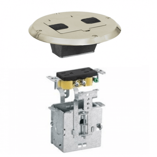 RF515AL, HUBBEL, WOOD, FLOOR, ELECTRICAL, BOX, KIT, ALMOND, FINISH, PLATE