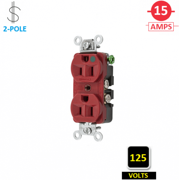 HBL8200HRED HUBBELL 15A 125V COMPACT HOSPITAL-GRADE DUPLEX RECEPT RED