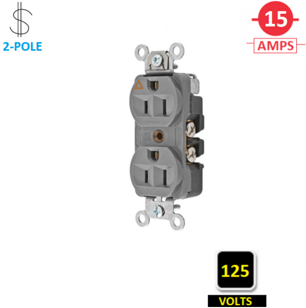 CR5252IGGY HUBBELL 15A 125V I/G DUPLEX RECEPT GREY
